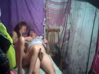 大肚腩胖哥简易窝棚嫖妓两人老婆老公的叫得很亲热临走往别人屁股狠狠打了一巴掌